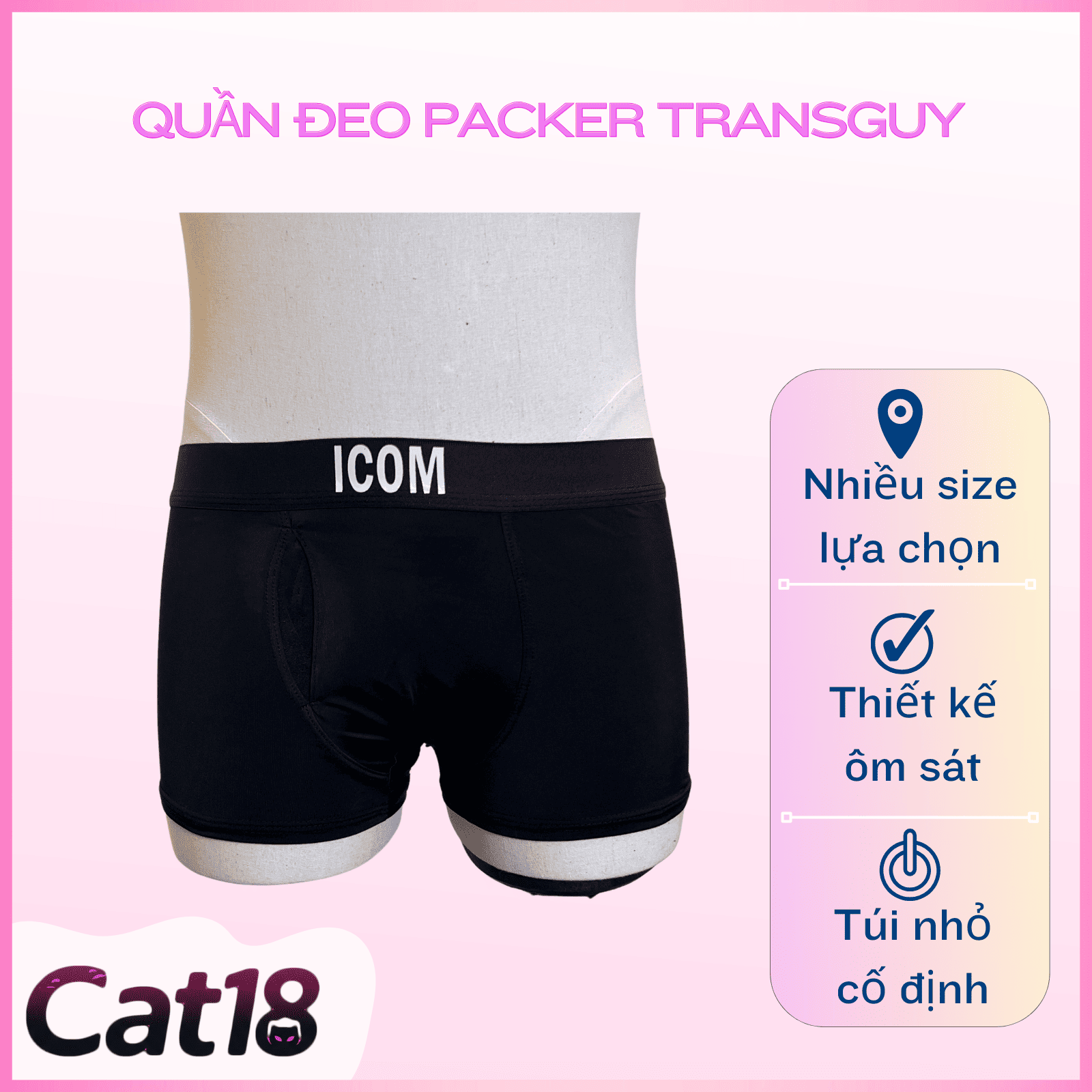 Quần BOX đeo packer dành cho transguy được thiết kế chuyên biệt để packer một cách chắc chắn, kín đáo và thoải mái trong sinh hoạt hằng ngày. Kiểu dáng boxer hiện đại, ôm sát cơ thể nhưng không gây khó chịu, giúp bạn tự tin di chuyển, làm việc và vận động.